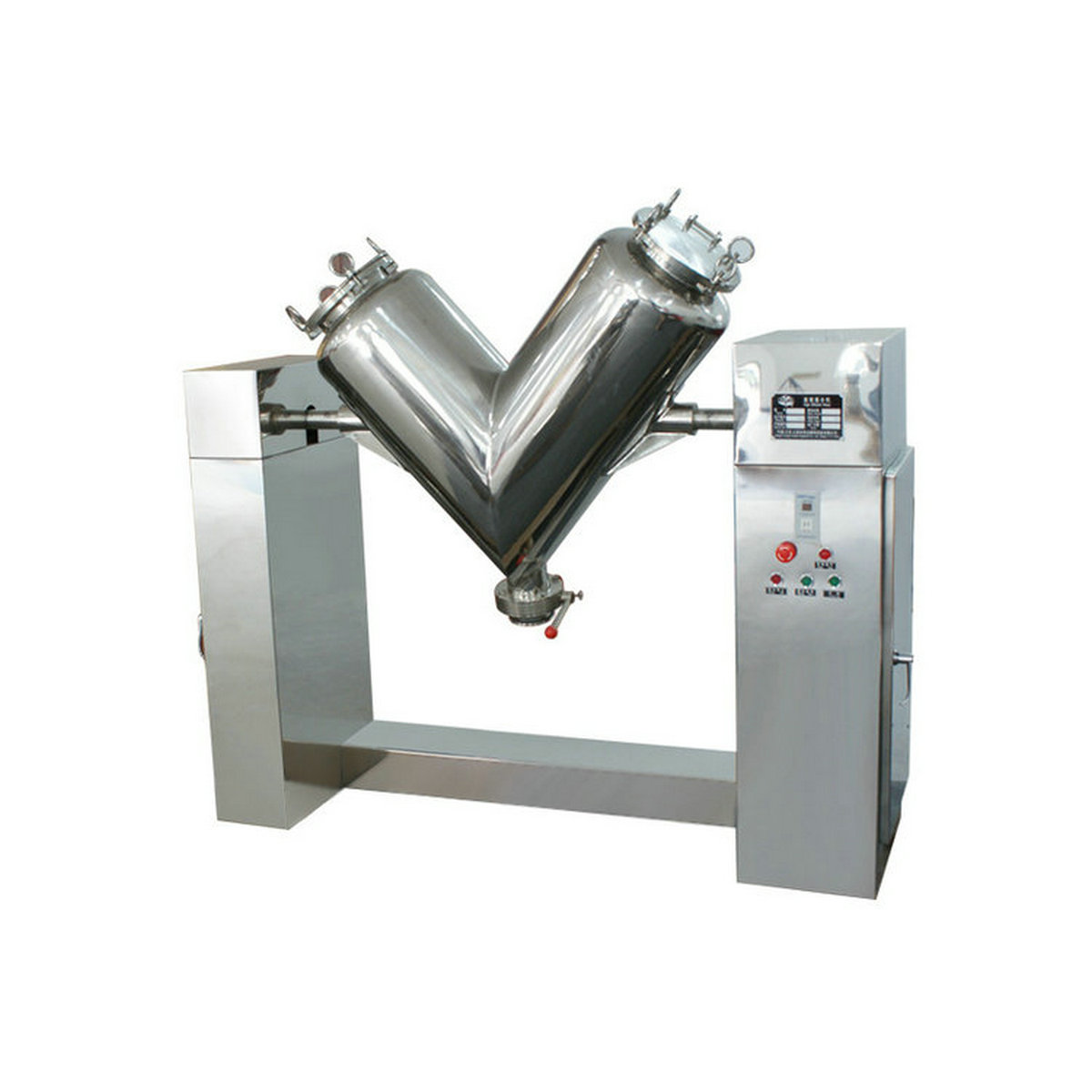 本設(shè)備采用手工進(jìn)料和封閉碟形閥出料結(jié)構(gòu),可以實(shí)行無(wú)粉塵操作,同時(shí)物料在混合時(shí)沒(méi)有機(jī)械擠壓和強(qiáng)烈摩擦,可以保持物料顆粒完好無(wú)損,本機(jī)混合筒采用不銹鋼制造,對(duì)混合物料無(wú)任何污染。另外,本機(jī)還裝有定時(shí)裝置,可以控制物料的混合時(shí)間。