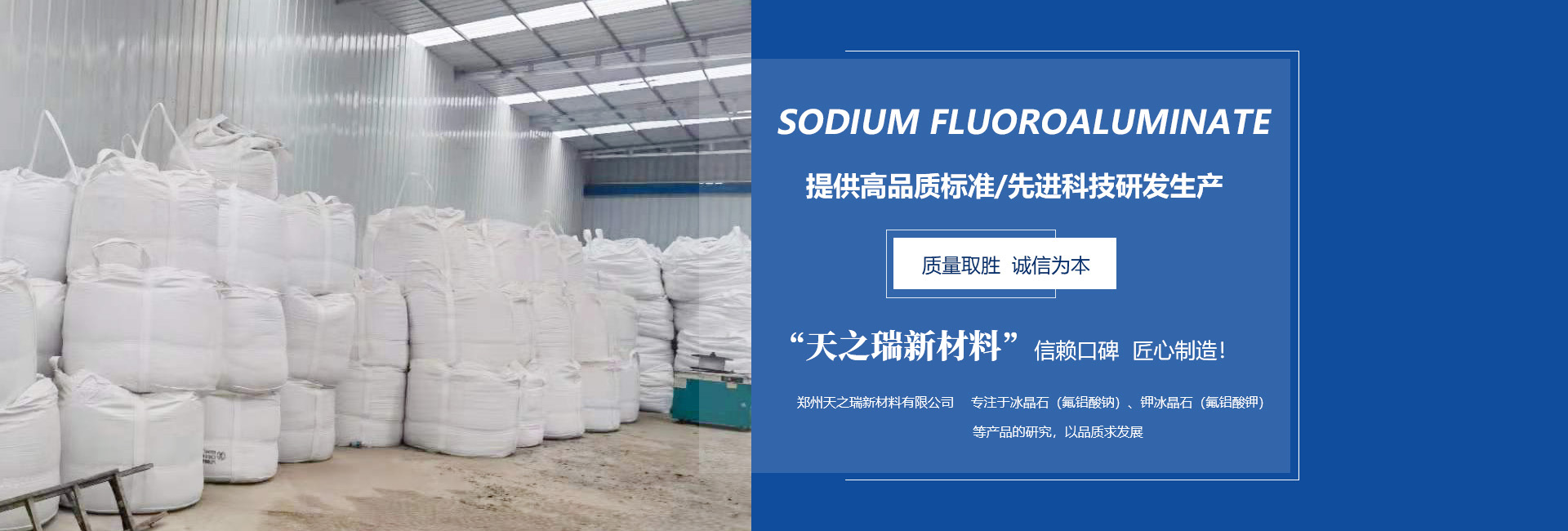 鄭州天之瑞新材料有限公司 鄭州天之瑞新材料有限公司位于河南省民營科技園(鞏義),坐落于伊洛河畔,是河洛文化的重要發(fā)源地,隴海鐵路,連霍高速,鄭西高鐵均在此設(shè)站,地理位置優(yōu)越,交通方便,十分便利。 公司建于2014年,前身為鄭州天瑞晶粒科技有限公司,資產(chǎn)實(shí)力雄厚,科技含量高,是集科研、開發(fā)、生產(chǎn)、銷售服務(wù)一體化的冰晶石生產(chǎn)企業(yè)。公司主營:冰晶石,再生冰晶石,鈉冰晶石,氟鋁酸鈉,六氟鋁酸鈉,氟鋁酸鉀,鉀冰晶石。其產(chǎn)品在電解鋁行業(yè)、鐵含量及沸騰鋼、鑄造業(yè)、研磨行業(yè)及農(nóng)藥行業(yè)等不同領(lǐng)域廣泛使用。 公司秉承“以人為本,誠信立業(yè),科技創(chuàng)新”的企業(yè)精神,堅(jiān)持“顧客至上”的營銷方針,竭誠為全國用戶提供服務(wù)。 熱忱歡迎各界朋友來公司洽談業(yè)務(wù),天之瑞期待與您的合作。 |